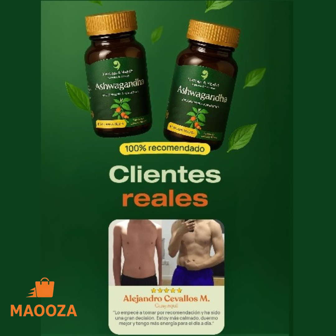 La Ashwagandha orgánica, actúa directamente sobre tus niveles de cortisol (hormona del estrés), ayudándote a mantenerte tranquilo, con energía y enfoque mental, incluso en los días más difíciles.